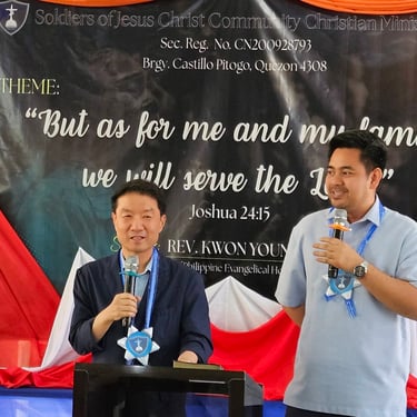 지난 3월 15일 주일은 Soldiers of Jesus Christ 교회를 방문하여 말씀을 전하는 시간을 가졌습니다. 이 교회는 필리핀국제대학교 출신인 아티엔자(Atienza) 여성 목사의 영적 리더십 아래, 퀘손(Quezon) 프라빈스 피토고(Pitogo) 지역에서 활발한 사역을 펼치고 있습니다. 특히 8개의 지교회를 개척하며 지역사회에 복음을 전하는 놀라운 사역을 감당하고 있어 큰 감동과 도전을 주고 있습니다. 현재 본교회에는 약 200여 명의 장년 성도가 출석하고 있으나, 안타깝게도 자체 예배당이 없어 임대 건물을 사용하고 있는 상황입니다. 예배 공간이 부족하여 여러 부로 나누어 예배를 드리고 있으며, 안정적인 사역을 위해 교회 부지 구입과 건축이 절실히 필요한 상황입니다. 이에 교회는 대지 구입과 예배당 건축을 위해 기도하고 있으며, 약 1억 원 상당의 예산이 필요합니다.